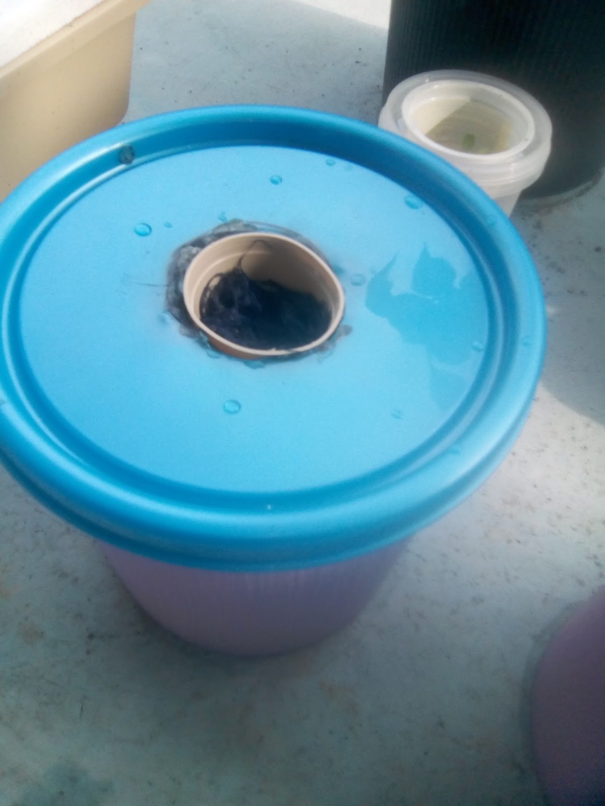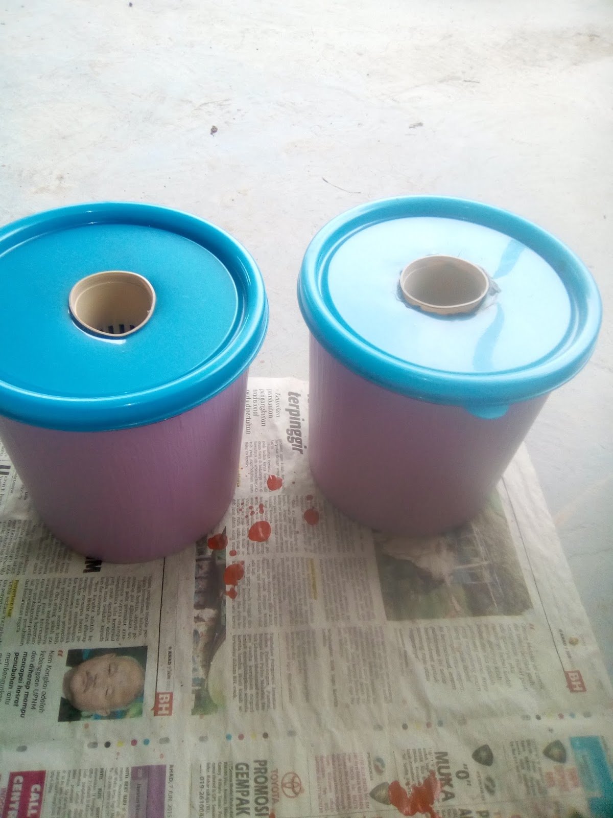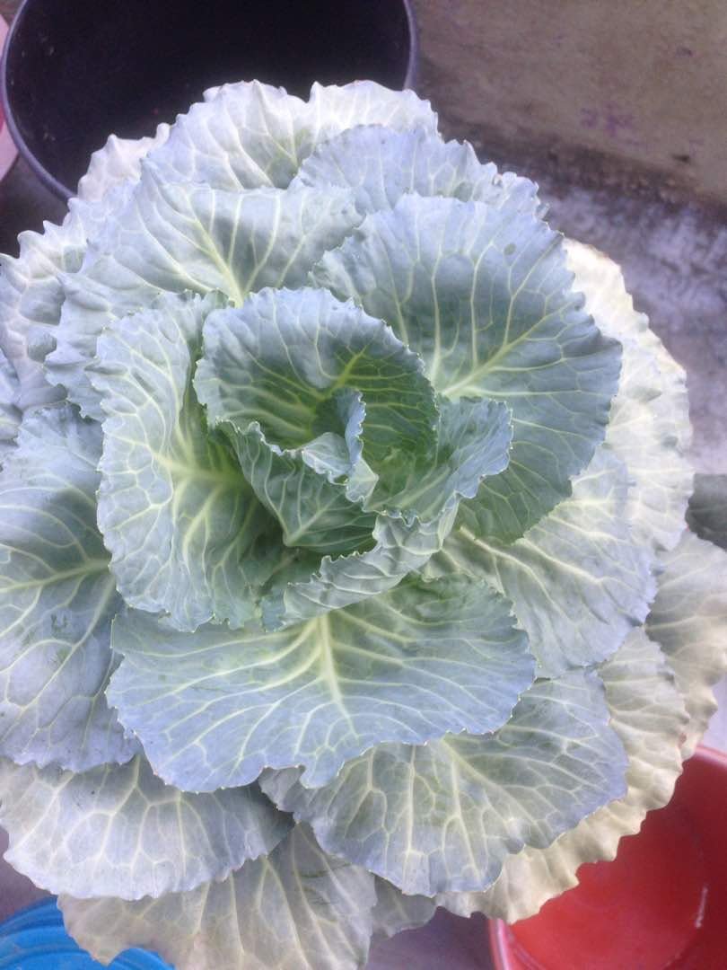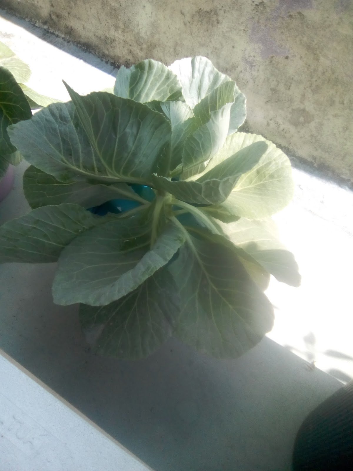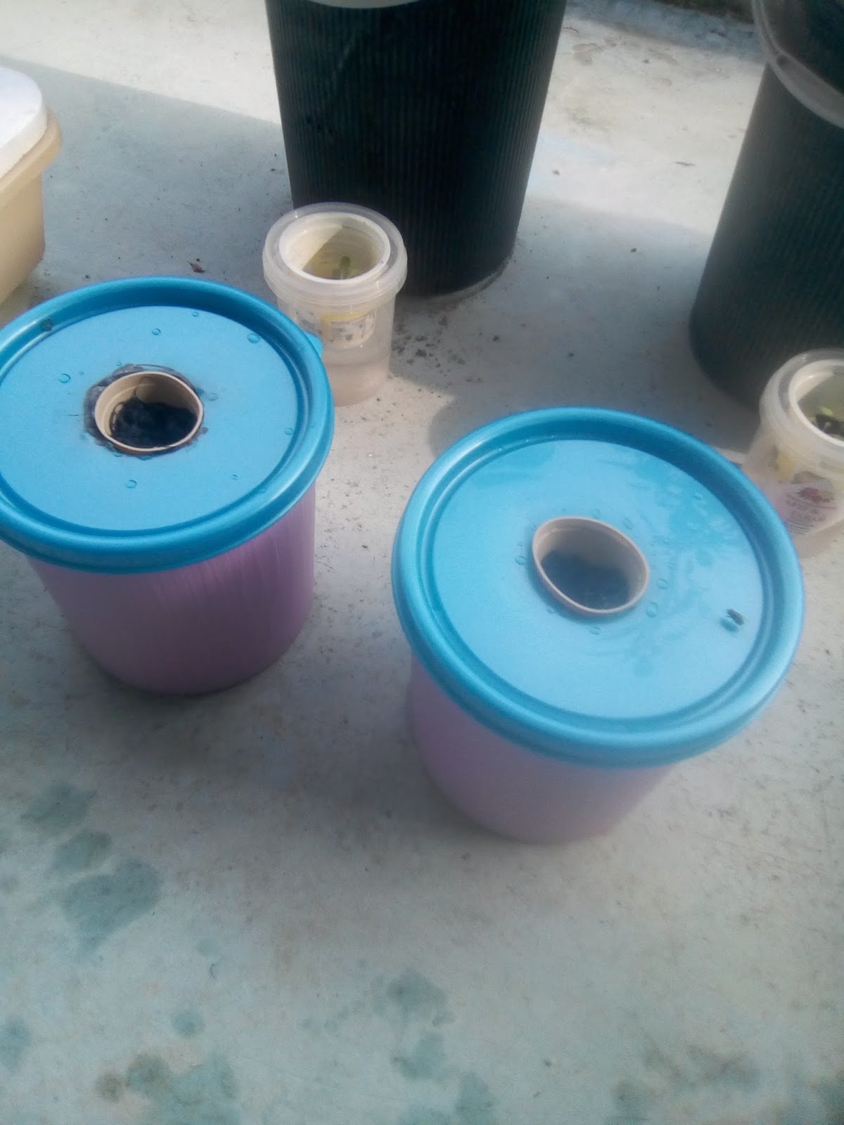 Percubaan menanam 2 pokok kobis hidroponik menggunakan bekas yang di cat.