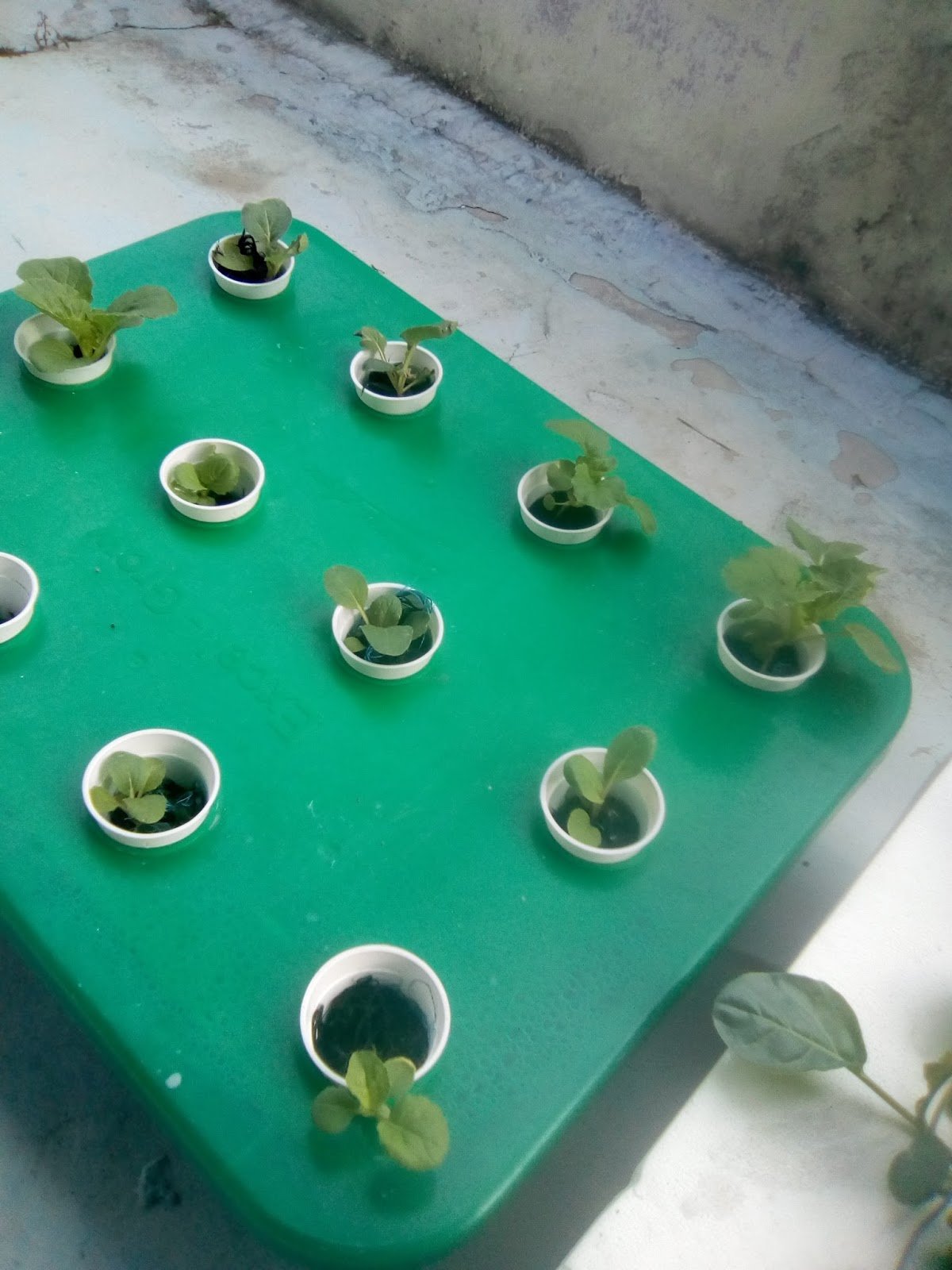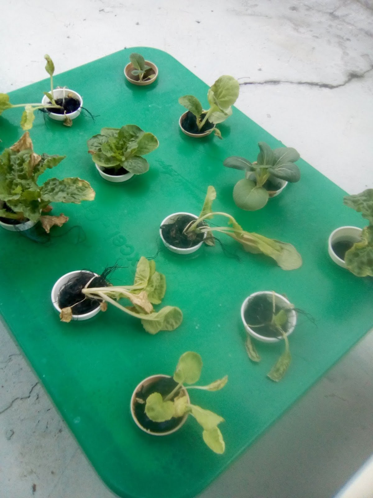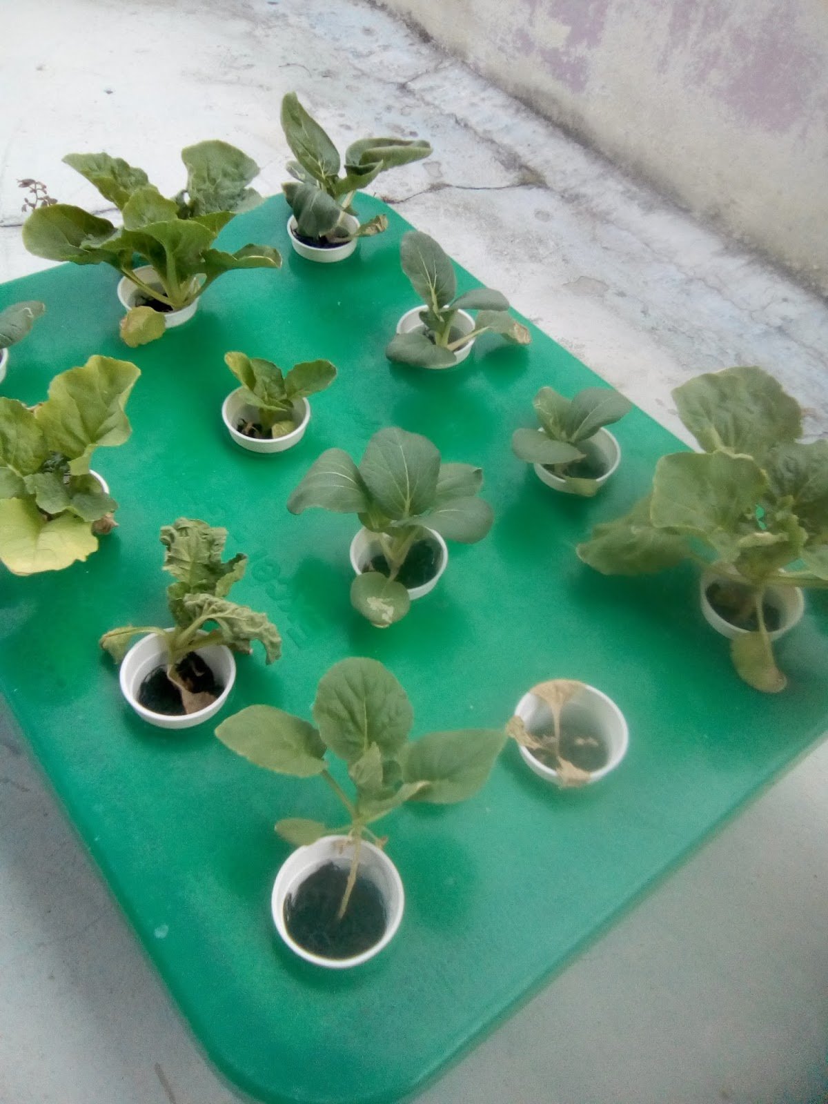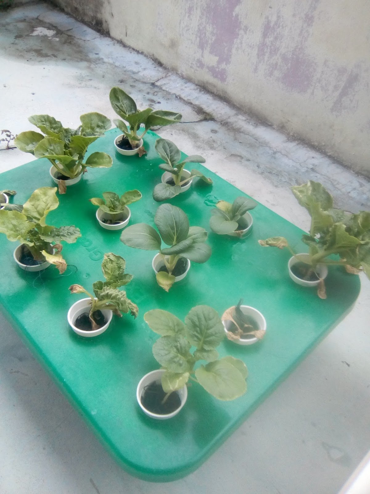 9.8.17 : anak sawi kerinting dialihkan ke sistem hidroponik sebanyak 7 lubang