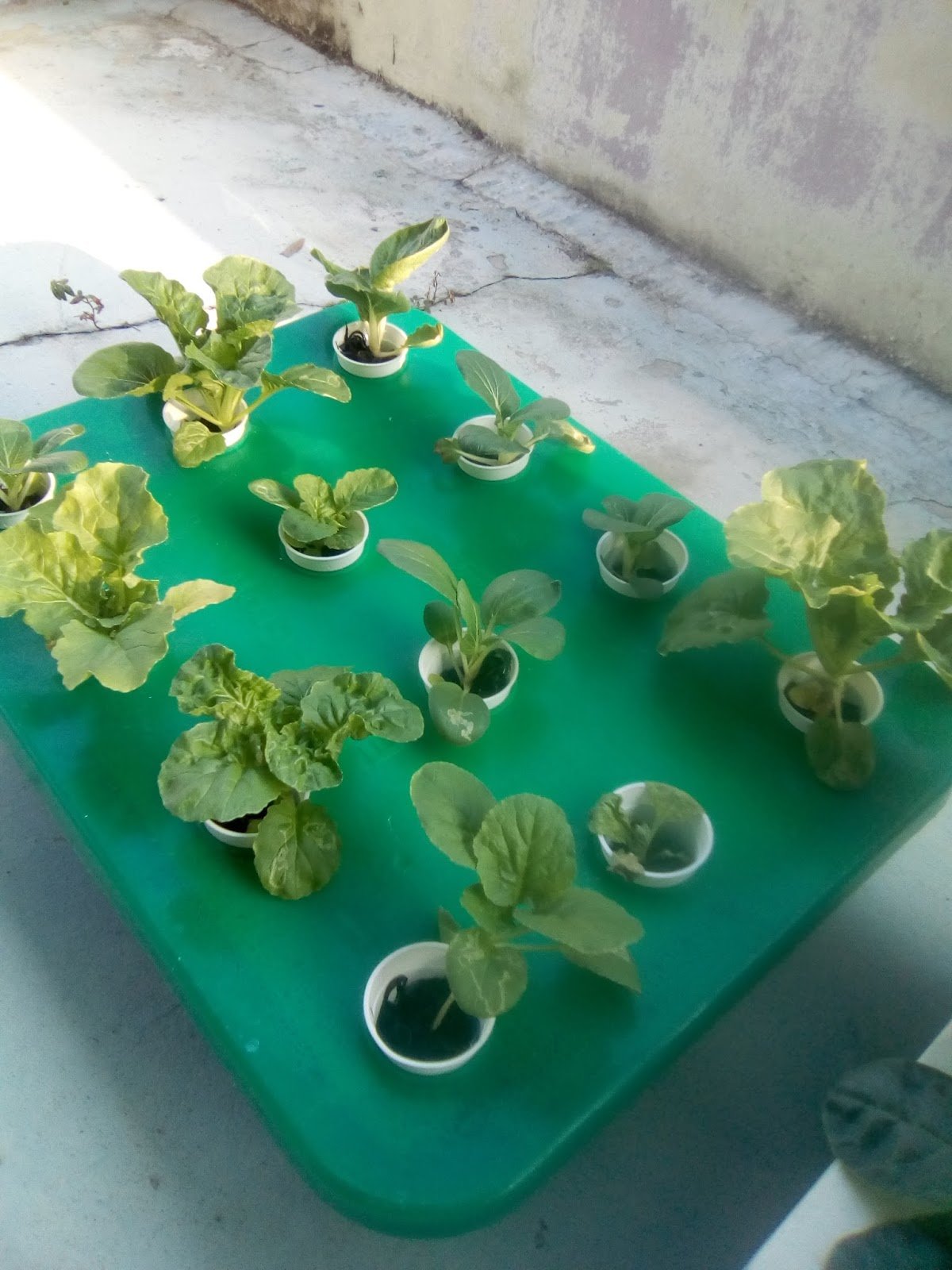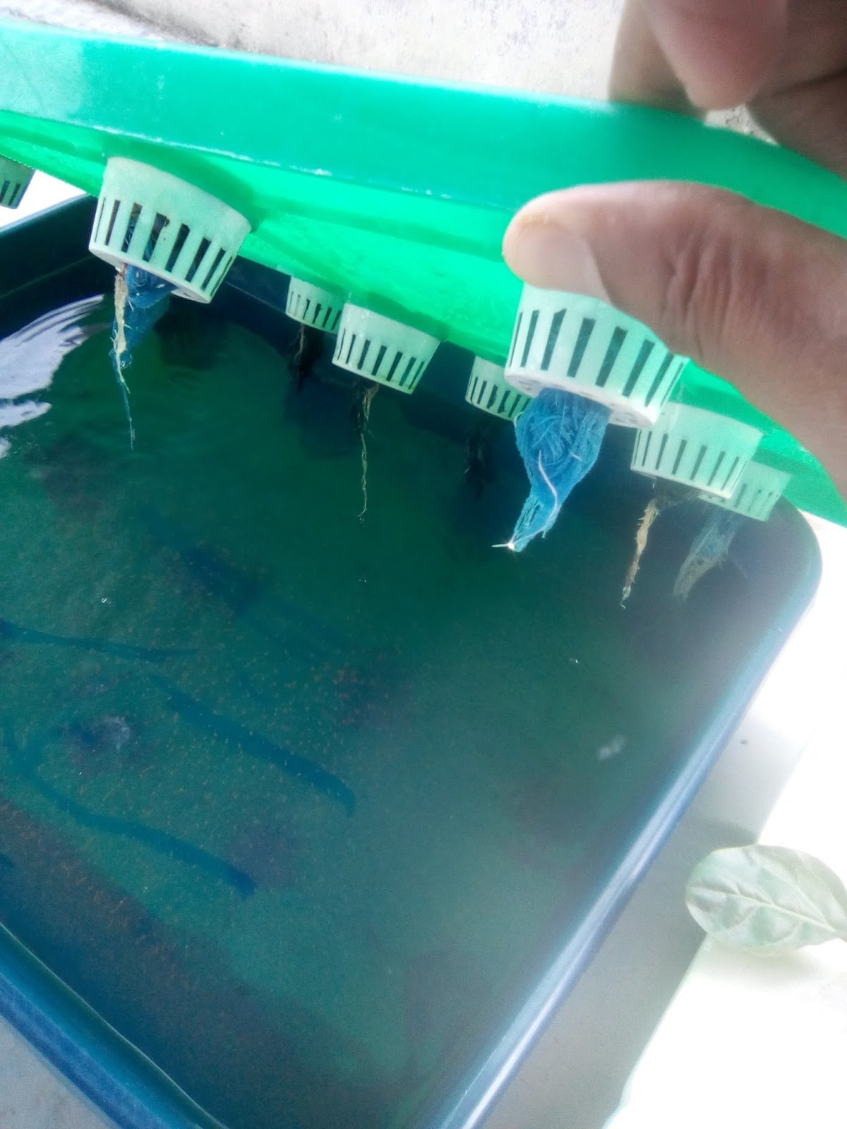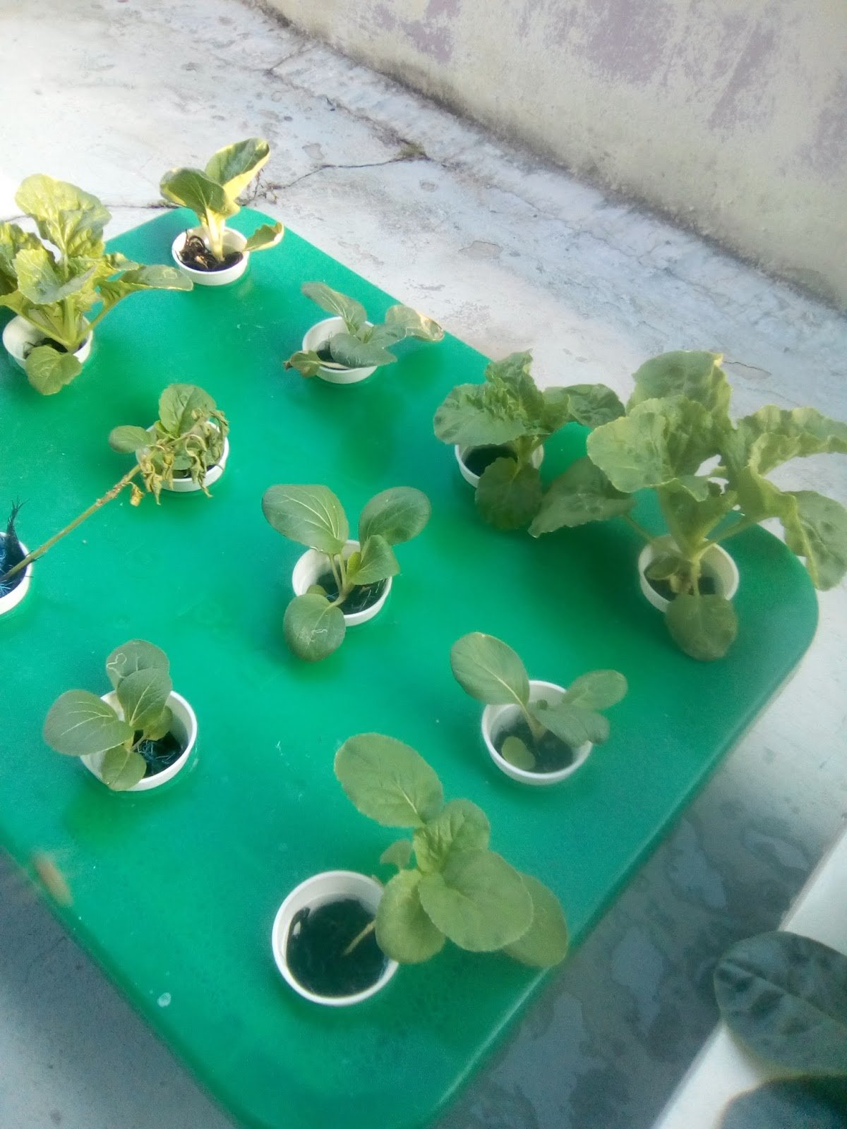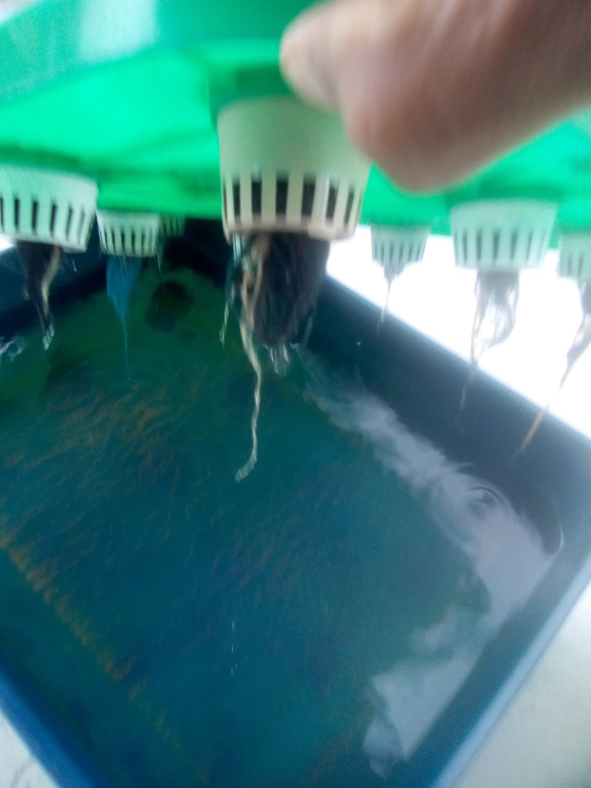 9.8.17 : anak sawi kerinting dialihkan ke sistem hidroponik sebanyak 7 lubang