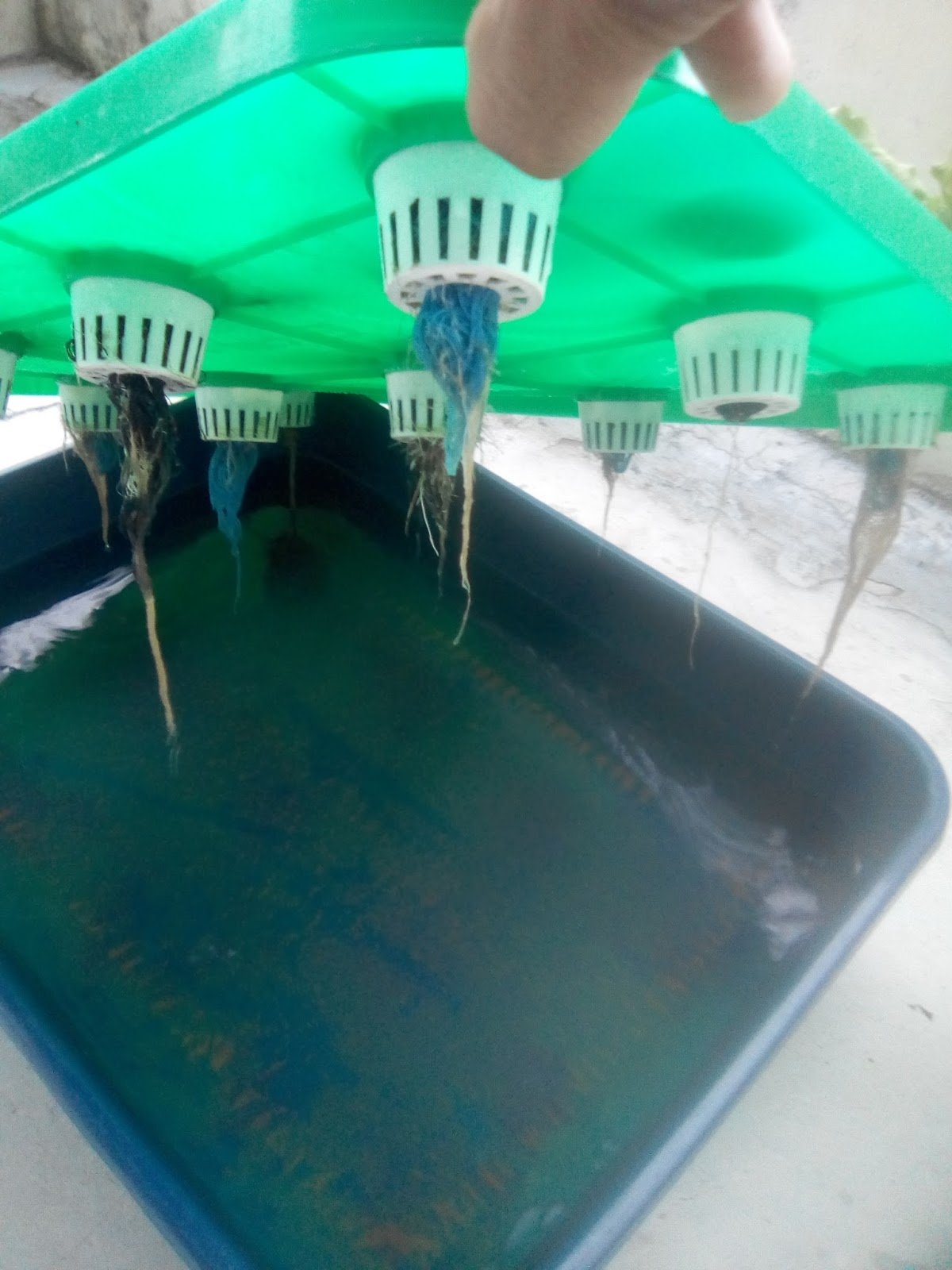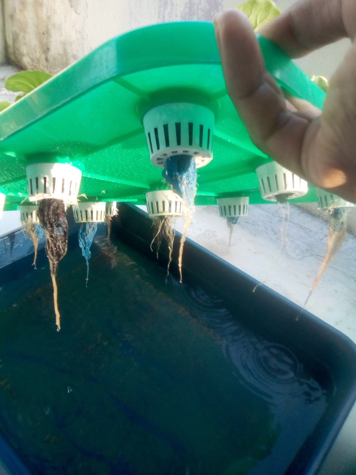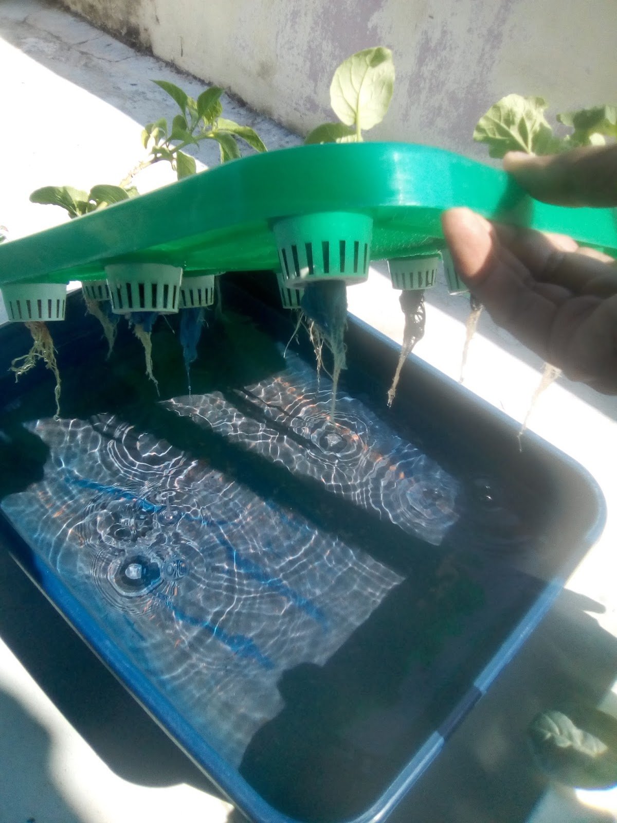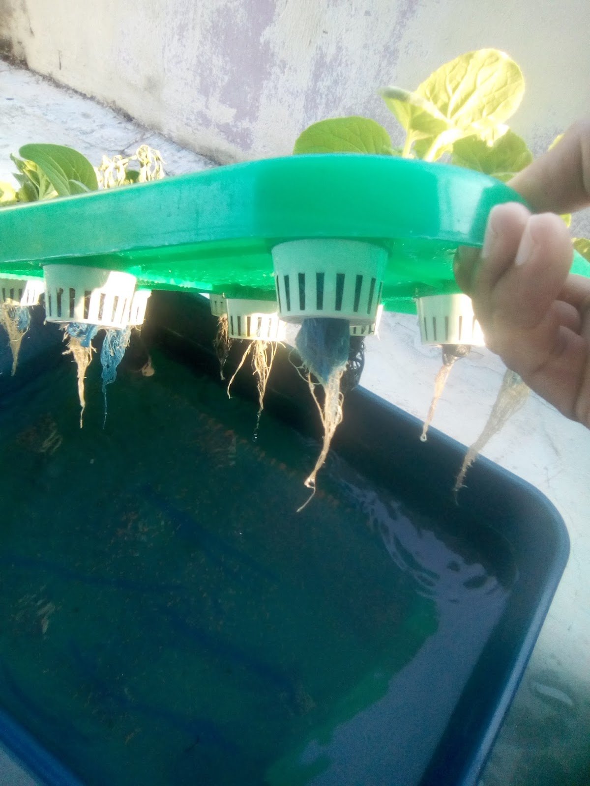 9.8.17 : anak sawi kerinting dialihkan ke sistem hidroponik sebanyak 7 lubang