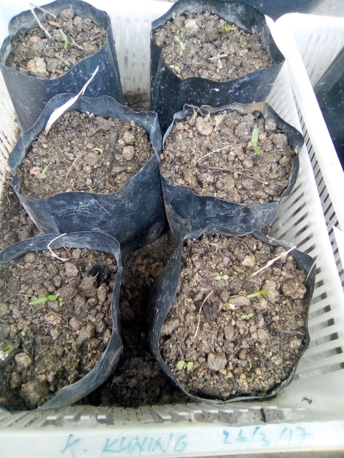 22.3.17 : mempunyai 240 biji benih di dalamnya. Dikeringkan untuk di semai dalam beg poli 6″x6″ dan akan dipindahkan ke NR2.