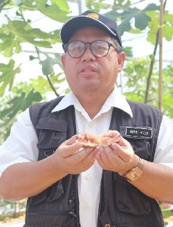Bahan tanaman pokok figs boleh didapati melalui kaedah pembiakan vegetatif seperti keratan batang dan juga dengan mengetut. Buah figs merupakan buah ‘Synconium’ iaitu ada ruang kosong dibahagian tengah (hollow) dengan isinya yang melekat pada kulit buah (Sila lihat foto disebelah). Buahnya mungkin berbentuk Obovoid atau Bentuk Buah Pear atau Bentuk Turbinate dengan ada lubang dihujung buah tersebut. Ukuran saiz buah sekitar 3-10 cm garispusat dengan berwarna hijau ketika muda. Warna kulit luarnya apabila masak berbeza mengikut varieti sama ada ianya hijau kekuningan, warna perak, tembaga atau ungu gelap. Bentuk bunga lazimnya sama dengan bentuk buah. Bunga figs akan terbentuk dimana ia berada didalam buah dan melakukan pendebungaan sendiri atau secara berbantu bergantung kepada varieti buah figs. Anehnya diluar negara dimana pokok ini tumbuh ditanam terdapat sejenis Tebuan Kecil (Blastophaga grosorum – tiny wasps) yang mempunyai sesungut panjang akan hinggap pada bunga buah figs dimana membantu menjalankan pendebungaan. Kulit luar buah figs adalah lembut dan nipis sahaja. Isinya sama ada berwarna putih, kuning pucat atau amber, pink, warna ros, merah atau ungu seperti berjerami melekat pada bahagian kulit (Lihat foto sebelah). Ia lazimnya agak melekit dan sedikit bergetah semasa buah masih muda tetapi akan menjadi berair (juicy) dengan rasa manis apabila cukup masak. Saya beberapa kali dapat makan buah figs segar ketika berkursus di Mesir pada tahun 2005 dan kawatan ke Beijing pada tahun 2012. Buah figs juga mempunyai biji sama ada ia bersaiz besar, sederhana, kecil atau sangat kecil (minute). Biji ini mengandungi banyak khasiat yang dimakan bersama kulitnya apabila buah figs telah dikeringkan. Rasanya manis jika ia dimakan bersama isi dan boleh dikunyah dengan mudah. Semuga artikel ini memberi info berguna kepada pembaca blog anim agro technology dan usahawan disini akan teruskan usaha memajukan tanaman figs ini. Menteri Pertanian semasa melancarkan Buku Halatuju Kementerian Pertanian pada 14 Febuari 2019 di MAEPS, Serdang yang penulis blog hadir ada menyatakan buah tin ini sebagi satu buah berpotensi baru yang akan dimajukan. Wasallam!!…
