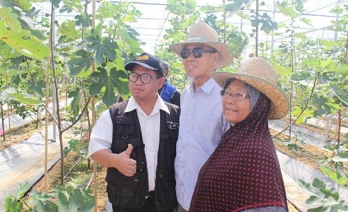 di Malaysia memandangkan pokok ini telah manja dengan iklim asal iaitu kering dan sejuk. Pokok induk atau benih buah figs ini pada asal sejarahnya telah banyak dibawa masuk kenegara ini tanpa melalui pintu yang sah dan ditanam sebagai tanaman hobi sahaja oleh peminatnya. Bagaimana pun ia telah menjadi satu tanaman yang sangat berpotensi jika diusahakan dengan betul dan menggunakan teknologi ubahsuai yang direkacipta dan disesuaikan dengan cuaca dinegara kita. Pada asalnya pokok tin ini ditanam disekeliling rumah sahaja didalam pasu sebagai hobi dan dijaga baik dan kemudian ia dikembangkan secara komersil oleh beberapa usahawan kerana proses pembiakannya dengan keratan batang mudah berjaya. Saya ada menulis banyak artikel mengenai buah tin (fig) ini dalam blog sama untuk dirujuk (Sila klik disini), (Sila klik disini), (Sila klik disini) dan beberapa lagi. Beberapa orang usahawan dan individu telah berani menanam buah tin ini secara komersil di seluruh negara dan mereka yang berjaya dilaporkan menggunkan Rumah Kalis Serangga (RKS). Buah ini mudah diserang musuh seperti Lalat Buah (Bacterocera carambolae atau Dacus spp), Tupai, Tikus, Burung dan beberapa jenis penyakit tertentu. Pendek kata penanaman buah tin memerlukan kawasan yang kondusif untuk dikomersilkan seperti menanam dibawah rumah kalis serangga dan rumah kalis hujan. Penulis blog yang melawat kebun buah tin Tn Hj Reduan dan diiringi oleh usahawan lain tanaman tin di Kg Janda Baik ini mendapati tanaman figs di kampong ini agak berjaya.
