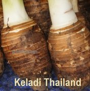 Dalam kita hendak mengenali pokok keladi sebaiknya penulis blog paparkan jenis-jenis keladi yang ada dinegara kita. Bergantung kepada kumpulannya keladi dikelaskan kepada dua iaitu Keladi yang boleh dimakan (edible yam) dan Keladi yang tidak boleh dimakan (non-edible yam). Apa pun antara jenis-jenis keladi boleh dimakan yang boleh ditemui di Malaysia adalah seperti Sarawak ialah seperti Keladi Cina, Keladi Sarawak, Keladi Mawar, Keladi Wangi, Keladi Udang, Keladi Kebuk, Keladi Kapas, Keladi Bugis, Keladi Lilin, Keladi Kuning dan lain-lain. Bagaimana pun ada sejenis keladi yang biasa ditanam dan dijual oleh petani-petani khususnya di Negeri Sarawak iaitu dipanggil sebagai ‘Keladi Thailand’ atau Keladi Pinang atau Keladi Cina (Sila lihat foto disebelah). Jenis ini boleh menghasilkan umbisi yang besar, anak dan batangnya boleh juga dimakan. Bagi jenis keladi Air, Manis dan Birah hanya batang dan tangkai daunnya boleh dimakan. Keladi Thailand telah dibuat pemerhatian oleh Jabatan Pertanaian di Sarawak dan mereka melaporkan keladi varieti Thailand berupaya untuk mengeluarkan hasil ubi segar lebih kurang 26 mt/ha ketika dituai iaitu pada umur 12 bulan selepas ditanam. Keladi jenis ini boleh mencapai ketinggian sek0.6 – 1.0 m. Warna isi ubinya kuning muda keputihan dengan kandungan kanji lebih kurang 65% daripada berat kering. Ketika dibuat kerepek ubi kita boleh mendapat lebih kurang 30% daripada berat ubi segar. Biasanya untuk tujuan membuat kerepek keladi jenis ini boleh dituai ketika berumur 9-10 bulan selepas ditanam. Bentuk dan rasanya menyamai dengan keladi cina dan keladi Mawar.