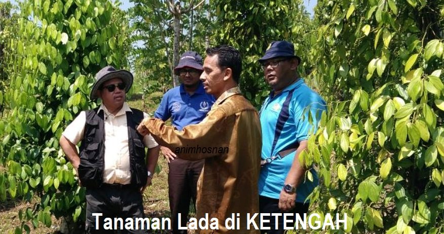 TANAMAN LADA HITAM DI KETENGAH, TERENGGANU merupakan satu usaha untuk menghasilkan lada di negeri tersebut. Penulis blog yang sempat membuat pemantauan di plot percubaan di Bandar Al Muktafi Billah Shah, Dungun, Terengganu seluas 2 ekar ini disambut oleh pengurus projek iaitu En Jafre dan En Din bersama ahli rombongan pegawai daripada LPNM Terengganu. Organisasi Lembaga Kemajuan Terengganu Tengah (KETENGAH) adalah merupakan salah sebuah agensi penting di bawah Kementerian Kemajuan Luar Bandar dan Wilayah yang telah diperbadankan pada 12 April 1973 melalui Akta Parlimen Bil. 104/73 dengan diberi kuasa untuk organisasi menjalankan pembangunan ekonomi dan sosial di kawasan seluas 443,876 hektar meliputi kawasan pedalaman Daerah Dungun, Kemaman dan Hulu Terengganu. Pada 12 Jun 1993 Kawasan Pembangunan Tasik Kenyir, Hulu Terengganu seluas 209,199 hektar telah digezetkan melalui P.U.(B) 356 dan pelan warta kawasan No. PW486 sebagai sebahagian daripada kawasan KETENGAH menjadikan keseluruhan wilayah KETENGAH berjumlah 653,075 hektar atau kira-kira satu perdua daripada seluruh keluasan Negeri Terengganu. Tinjauan penulis blog ke plot tanaman lada ini adalah tidak disengajakan selepas penulis blog melawat projek tanaman nanas MD2 iaitu di kawasan Ketengah yang dimajukan dibawah bimbingan mereka. Lada Hitam (Piper nigrum Linn) yang mana ia dipercayai berasal dari Barat-Daya India rempah daripada keluarga Piperaceae yang digunakan dengan meluas diseluruh dunia. Serbuk lada hitam digunakan sebagai perasa makanan dimana ia juga merupakan produk buah daripada tumbuhan tropika jenis memanjat. Saya ada menulis banyak mengenai lada hitam dalam penulisan sebelum ini (Sila klik disini), (Sila klik disini), (Sila klik disini), (Sil klikdisini) dan banyak lagi. Di Malaysia tanaman lada hitam banyak ditanam di Sarawak selain daripada sedikit di Johor (Kulai) dan Sabah. Keluasan tanaman lada hitam di Malaysia adalah pada kadar sekitar 13,000 hektar dimana kebanyakannya ditanam oleh pekebun kecil terutama di negeri Sarawak. Tanaman lada telah lama ditanam sejak tahun 1856 tetapi penanaman secara meluas bermula pada tahun 1900-an. Tanaman ini telah dibawa masuk ke negara kita oleh orang penjajah Eropah yang membawanya daripada negara lain. Artikel tengah malam ini saya menulis lagi di dalam blog ”Anim Agro Technology” mengenai aktiviti penanaman lada hitam di Terengganu sebagai satu catitan untuk dijadikan bahan rujukkan anda pembaca semua.