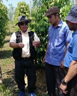 Penulis blog sempat memberitahu ilmu teknikal mengenai tanaman lada hitam kepada En Jafre yang juga terkejut dapat berjumpa dan berkenalan dengan penulis blog Anim Agro Technology yang mana beliau sering menjadikan blog ini sebagai sumber rujukan ilmu pertanian sejak lama dulu (Sila anda lihat foto disebelah). Pada masa ini banyak varieti atau kultivar terutama di negara India yang merupakan tempat asal tanaman lada. Bagaimana pun di Sarawak antara variti/kultivar yang paling banyak ditanam ialah Varieti Kuching merupakan varieti lada yang ditanam oleh Ketengah sejak dahulu. Kini Ketengah sedah dalam proses akhir membersihkan kawasan untuk penanaman lada seuas 20 hektar engan varieti Kuching iaitu dikawasan yang berhampiran dengan tempat lawatan program ‘Road to MAHA 2018’ di Kemaman, Terengganu. Selain itu melalui daripada aktiviti berterusan penyelidikan, Jabatan Pertanian Sarawak telah menghasilkan dua varieti lada iaitu varieti ‘Semongok Perak’ dan varieti ‘Semongok Emas’ dimana keduanya kini belum ditanam disini. Terdapat 47 ‘kemasukan’ (accessions) Piper nigrum dan 46 ‘kemasukan’ (accessions) spesies Piper di dalam koleksi germplasma lada di Pusat Penyelidikan Pertanian Semongok. Bahan-bahan ini telah digunakan untuk program penambahbaikan tanaman lada. Lada Hitam di Sarawak sebenarnya mula ditanam oleh pekebun Cina tetapi kini kira-kira 87 peratus daripada pekebun lada adalah kaum bumiputera, terutama kaum Iban dan Bidayuh iaitu hasil daripada galakan dan bantuan skim penanaman yang dilaksanakan oleh Jabatan Pertanian sejak tahun 1972. Penulis yang pernah bertugas di Jabatan Pertanian Sarawak dari 1995-1997 dapat melihat industri penanaman lada hitam diseluruh negeri tersebut.