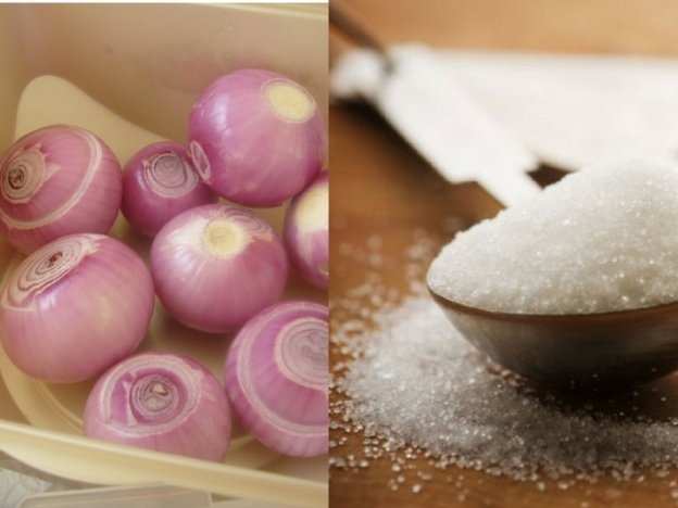 3. Ambil bawang besar dan tumbuk dengan sedikit gula putih. Tumbuk hingga sebati dan lumat.