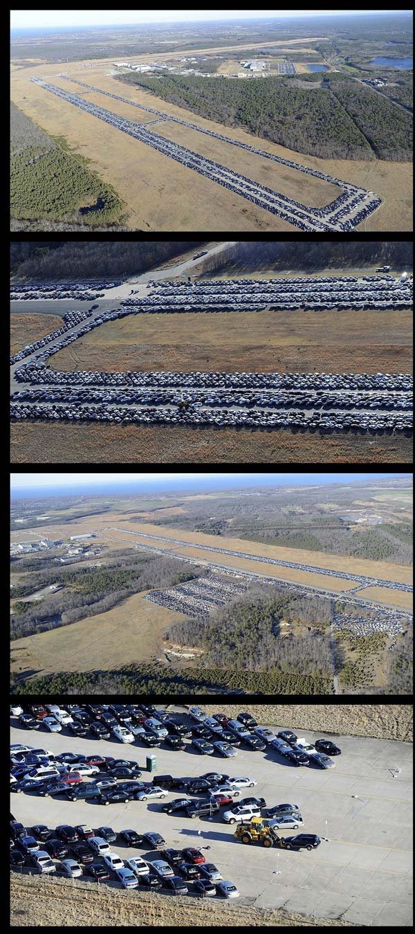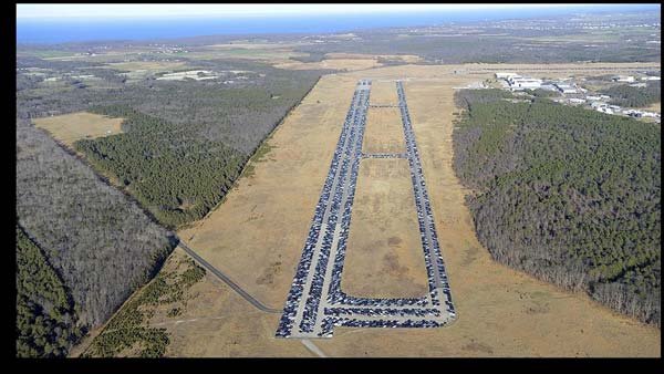 Kenderaan ini diletakkan di lapangan terbang Calverton di Long Island. Seperti yang anda boleh lihat, kesemua landasan lapangan terbang serta kawasan lapang sekelilingnya dipenuhi dengan kenderaan beroda. Mungkin ada diantara anda yang berkata “tak nampak rosak teruk pun?”.
