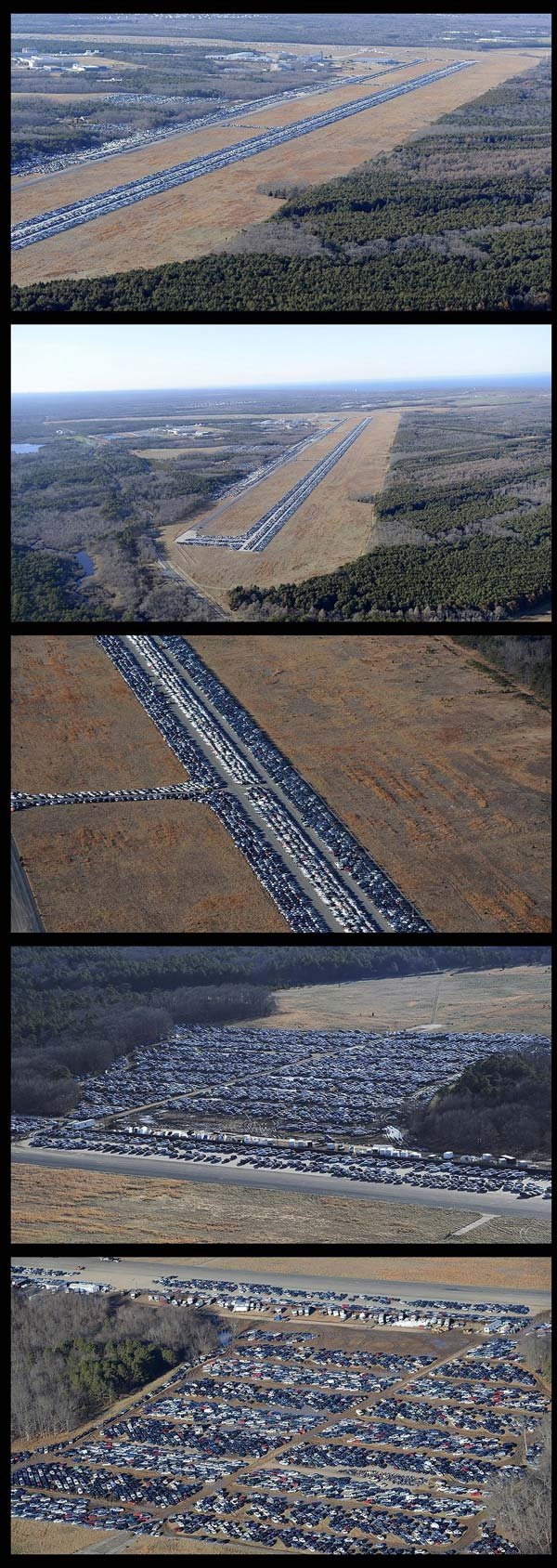 Taufan Sandy yang melanda New York Oktober lalu mengakibatkan kerosakan bernilai USD 63 Billion. Antara yang musnah ialah lebih dari 230 000 kenderaan bermotor. Gambar di bawah ialah gambar 15000 kenderaan yang rosak akibat Sandy dan sedang menanti waktu untuk dilupuskan.