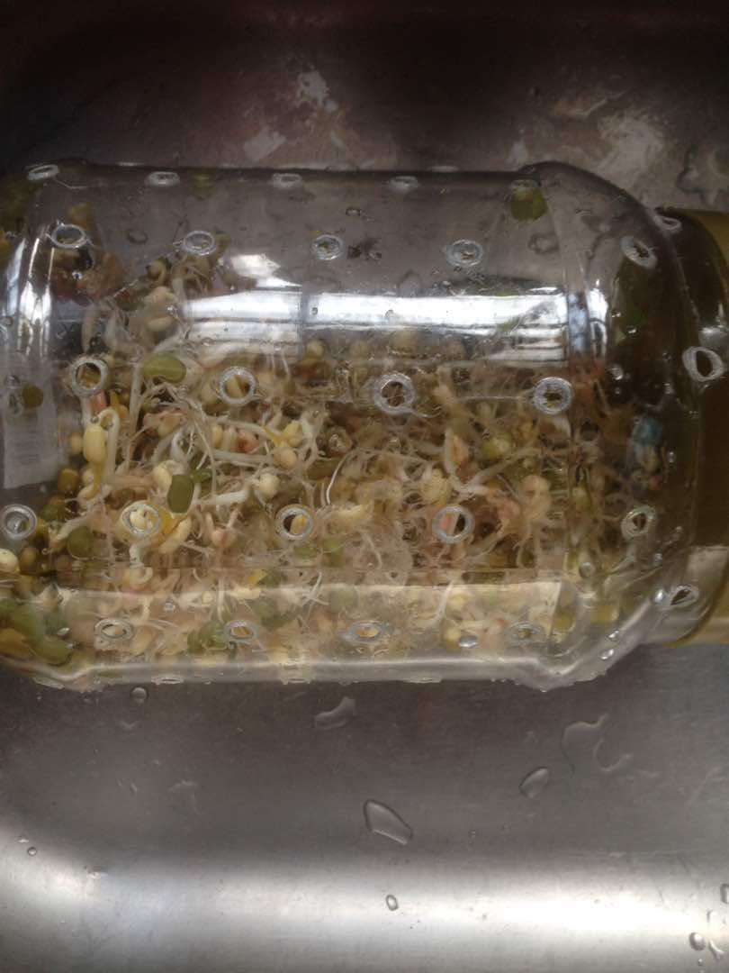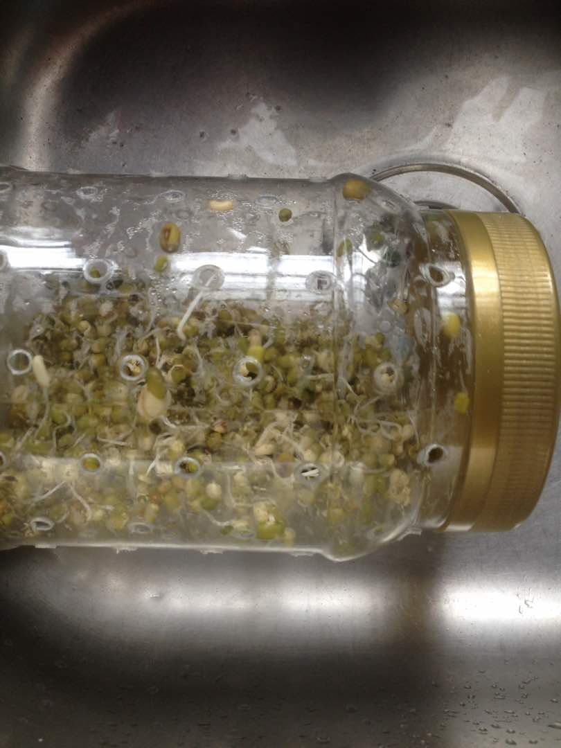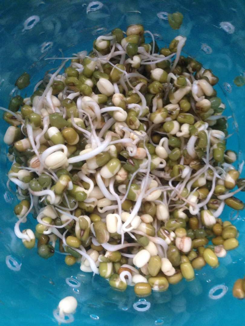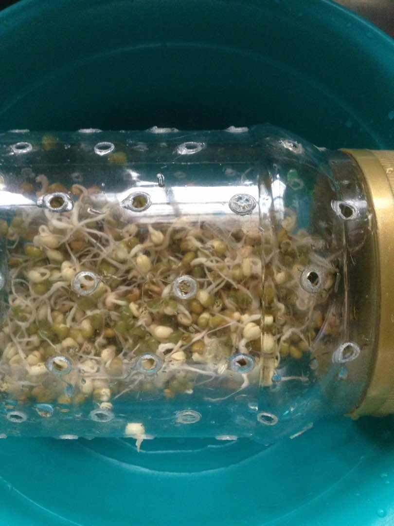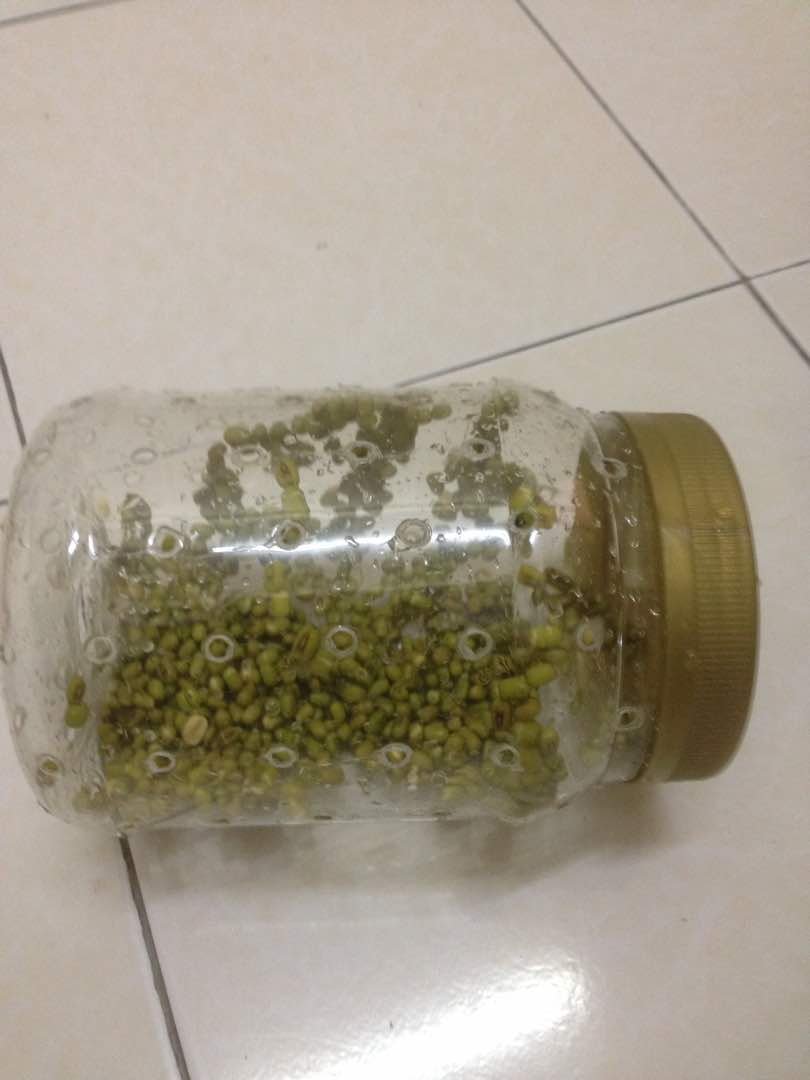 Menggunakan balang bekas kuih yang di buat lubang. Kacang hijau direndam selama 8 jam, di toskan dan di masukkan ke dalam balang dan disimpan dalam tong atau bekas gelap.