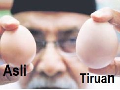 Dalam laporan media BERNAMA bertajuk Awas telur tiruan di pasaran – CAP” dinyatakan ada perbezaan telur tiruan (kanan) dan telur asli (Sila lihat foto disebelah). Ini apabila didedahkan oleh pihak