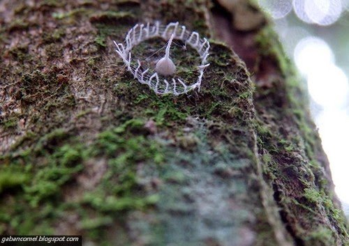 Organisma seni telah membina pelindung di sekitar kantung telurnya lengkap dengan tiang menegak merata dan anyaman selari sempurna yang jelas meniru pagar kayu.