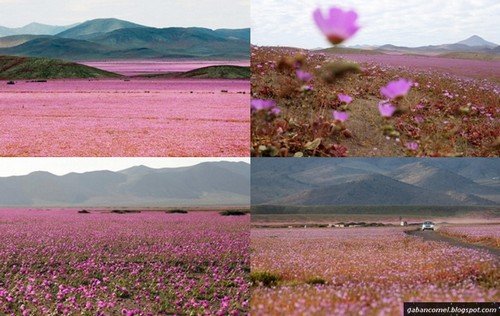 Fenomena serupa berlaku baru-baru ini. Padang pasir ini tiba-tiba dipenuhi oleh bunga-bunga berwarna merah muda. Perkara itu membuat tempat terkering di dunia itu tengah dilindungi oleh permaidani merah muda.
