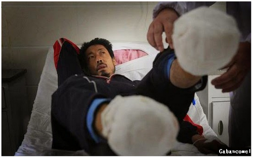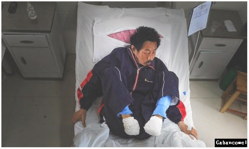 Tahun lalu warga China miskin lain. Zheng Yanliang, lelaki 47 tahun asal Qingyuan, Provinsi Hebei, harus memotong sendiri kaki kanannya dengan gergaji besi dan pisau buah setelah dia menderita penyakit di kakinya.
