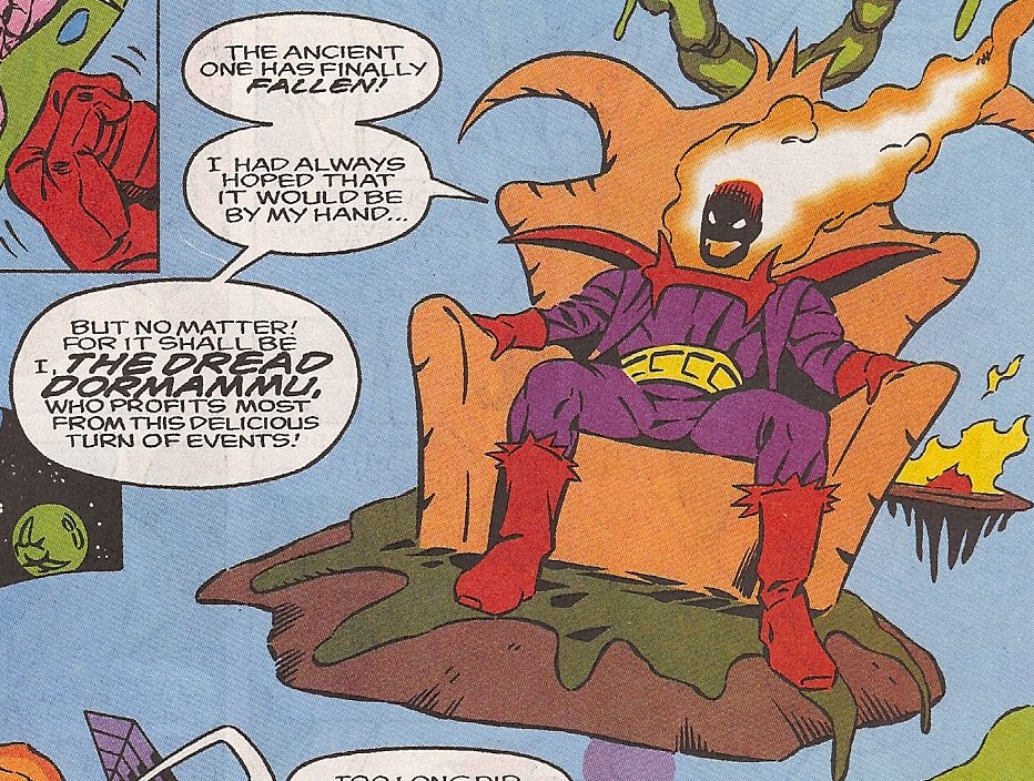 2) Dormammu. He’s one of Dr. Strange’s greatest villains and is ruler of a place called only “the Dark Dimension.” He’s also far more powerful in magic than Dr. Strange or even, the Ancient One.