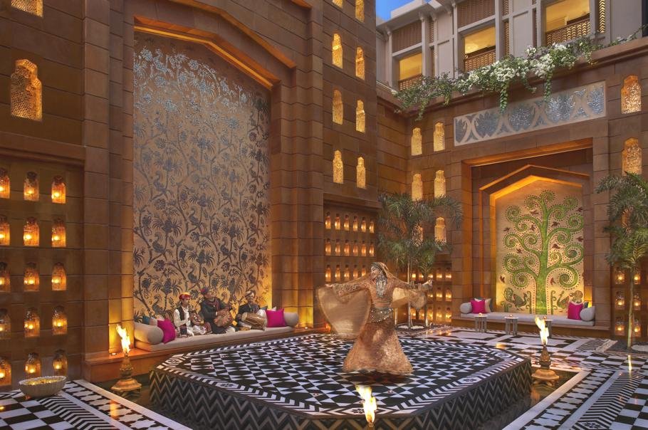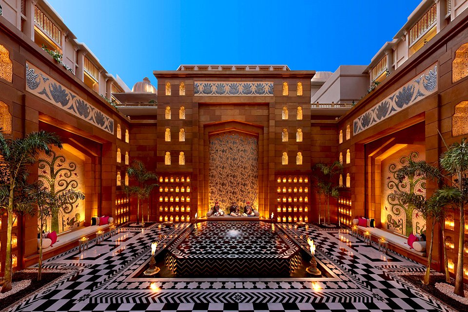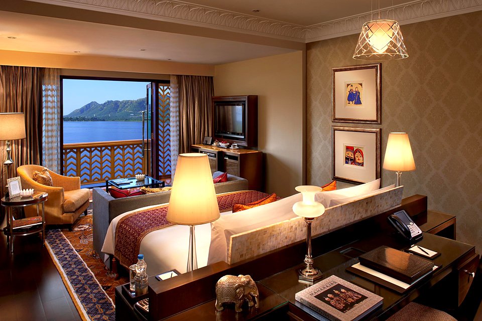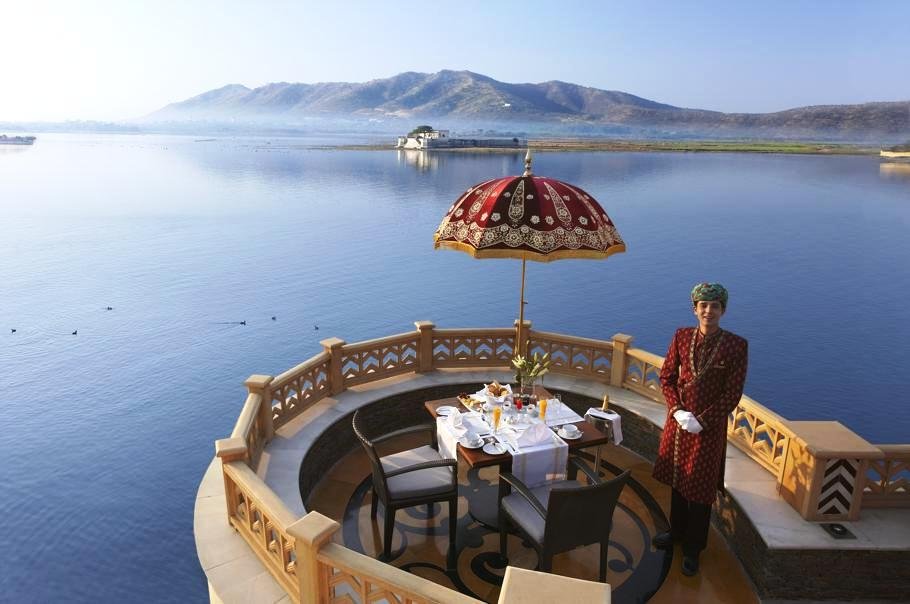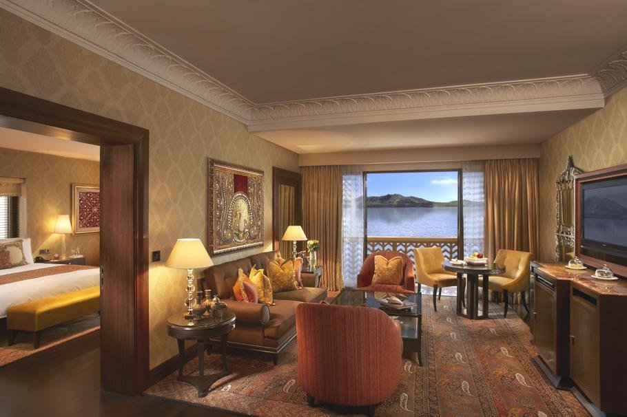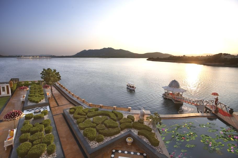 The Leela Palace in Udaipur overlooking the hills of Aravalis on the banks of lake Pichola will indulge you in romantic atmosphere , beautiful landscape and high-end services. With only 80 rooms this boutique property offers complete privacy and calmness to travelers visiting it. All the rooms are spacious from 580 to 3552 square feet of the Maharaja suite in modern style combined with traditional elements.