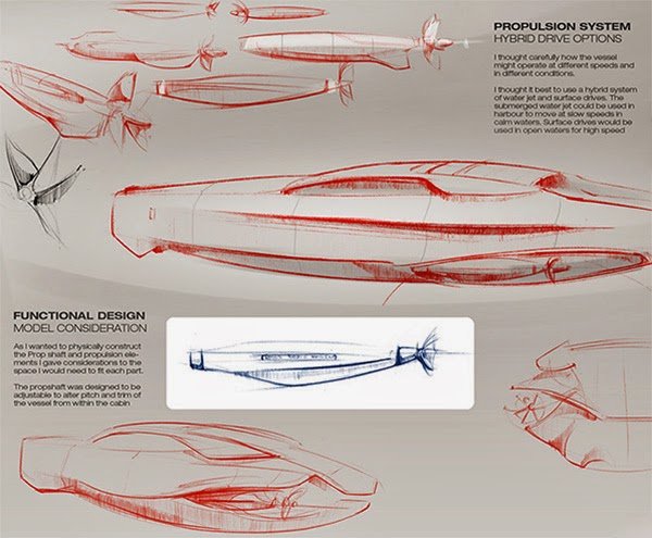 With an internship at Rolls-Royce in his résumé , Munro had no trouble designing a yacht with the look and feel of one of the most prestigious cars in the world. The 14.5-meter boat has a nose vaguely resembling the front of the Phantom and something of an aggressive look, yet still maintains a certain air of British distinction. The boat’s inside is graceful and elegant, while features like the monocoque chassis and suspended interiors add to the overall level of comfort.