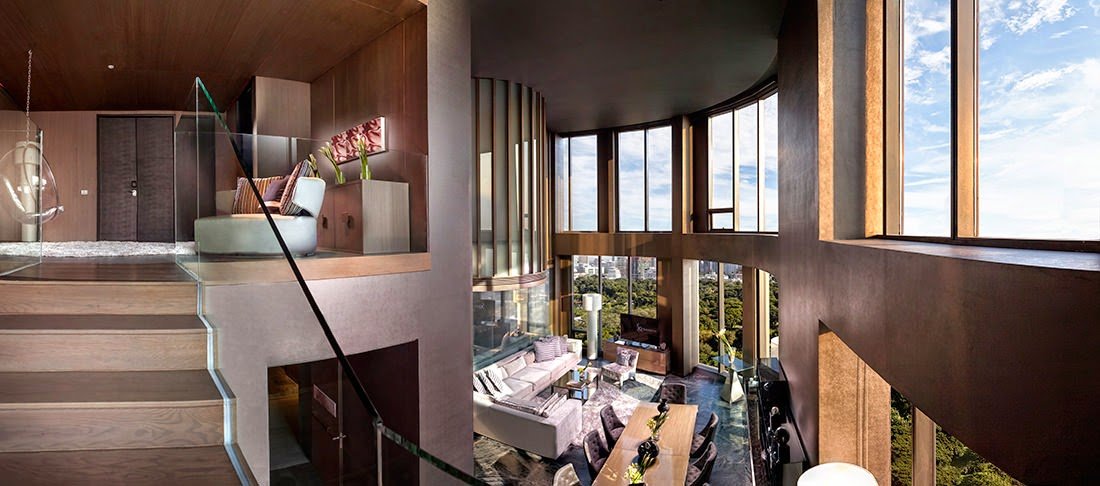 Situated on the corner of North Sathorn and Rama IV roads, this exceptional high-rise property blends a mosaic of materials that give a contemporary, high-tech look while at the same time appearing accessible and inviting. Sitting on a glass, zinc and stone podium with strong clear definition, the tower is striking in its different metallic shades and shifting glazed and solid panels.