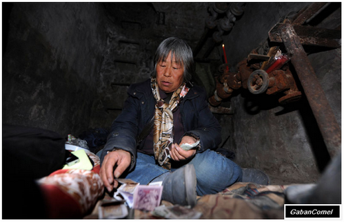Seorang wanita, Quan Youzhi yang berusia 66 tahun tinggal di dalam lubang bawah tanah di sini selama 20 tahun.