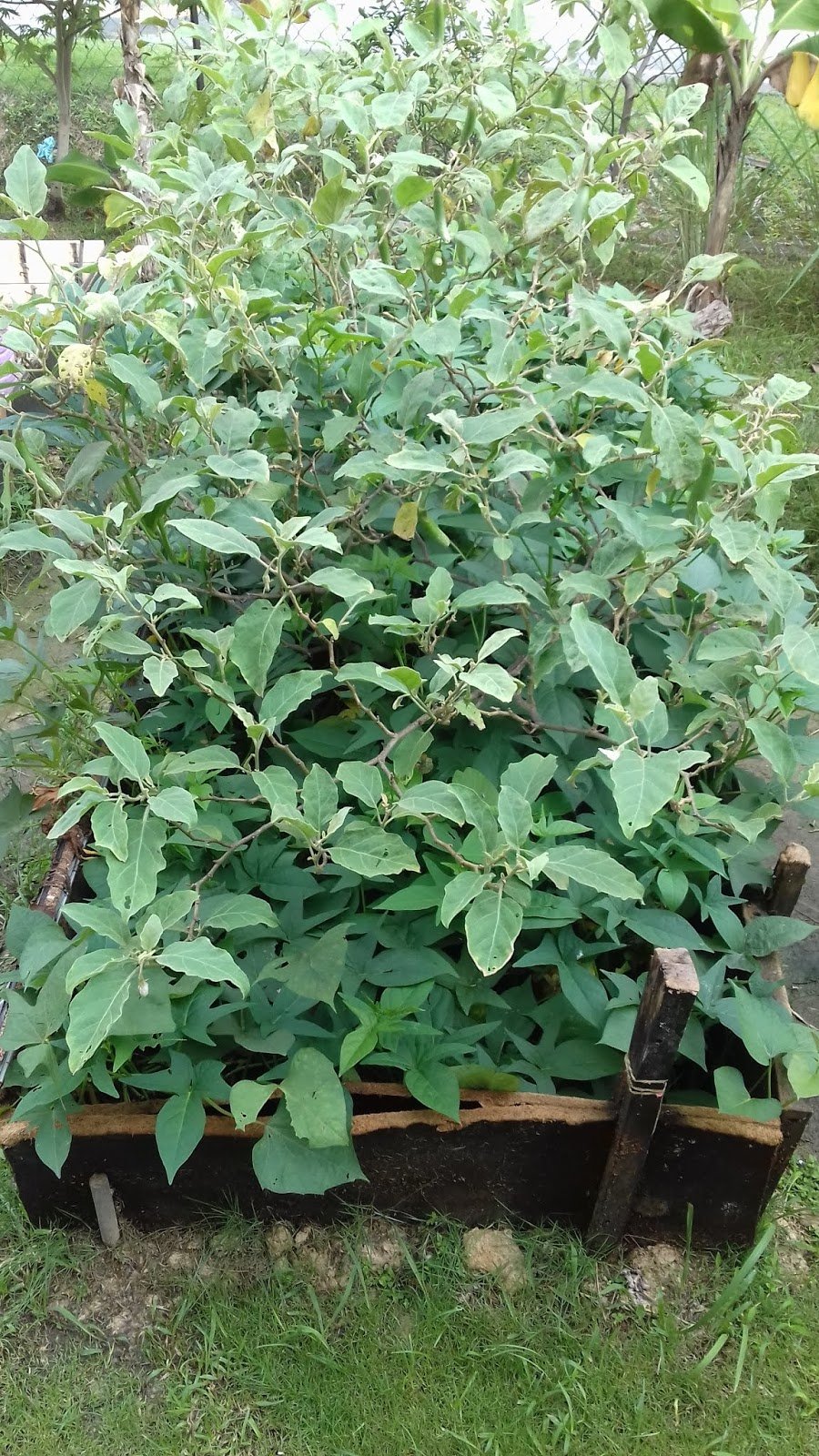 Terung telunjuk yang disemai pada 29.1.17 masih memberikan hasil lumayan apabila pangkasan dibuat dan batas timbun dengan penghadang di bina