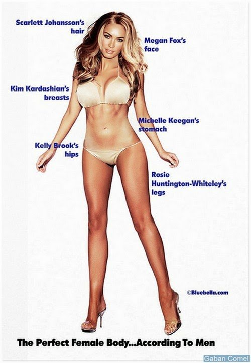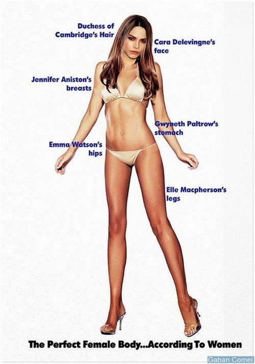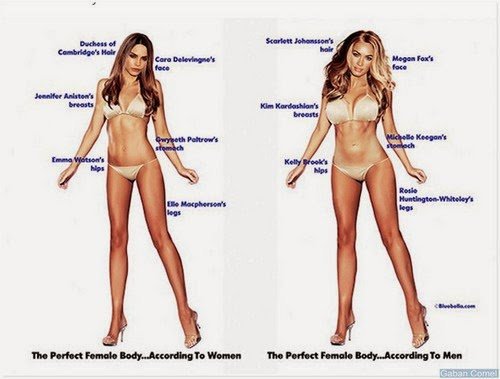 Wanita juga berfikir bahawa untuk menjadi “sempurna” wanita harus mempunyai rambut seperti Duchess of Cambridge dan payudara seperti Jennifer Aniston. Namun sebaliknya, lelaki lebih suka payudara Kim Kardashian dan wajah Megan Fox.