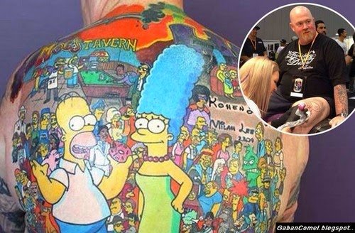 Lelaki ini bernama Michael Baxter, 52 tahun, yang dengan tindakan tersebut telah memecahkan rekod dunia sebagai lelaki dengan tatu simpsons terbanyak di dunia lebih tepatnya 203 watak kartun simpson. Tindakan tersebut tentu bukan perkara yang boleh dilakukan oleh banyak orang, kerana diakui sendiri oleh baxter bahawa ia perlu mengeluarkan kos yang cukup banyak untuk mentato tubuhnya dengan watak simpson iaitu sebanyak 12,000 dollar Australia.