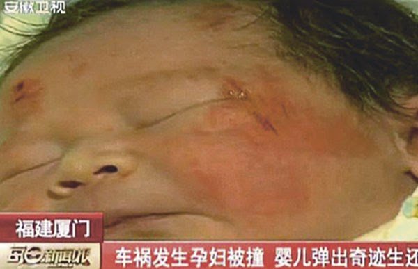 Pasangan berkenaan mati di tempat kejadian namun bayi mereka selamat dan dibawa ke hospital di wilayah Fujian China. Bayi yang diberi nama Xiao Zhao oleh kakitangan hopital itu hanya calar-balar.