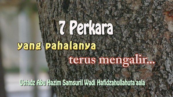 Artinya : Tujuh perkara yang akan terus berjalan pahalanya bagi seorang hamba walau pun ia telah meninggal dunia dan berada di dalam kubur yaitu : siapa yang mengajarkan ilmu, mengalirkan sungai, menggali perigi, menanam pokok kurma, membina masjid, mewariskan mushaf dan meninggalkan anak yang beristighfar baginya sepeninggalannya. (Hadith al-Bazzar)