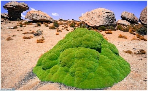 Jika anda melihat bentuk tumbuhan ini mungkin akan menyangka batu yang dilindungi lumut . Namun sebenarnya itu adalah tumbuhan hidup yang jarang berlaku . Tumbuhan tersebut bernama Yareta dan sudah ada sejak ribuan tahun lalu .
