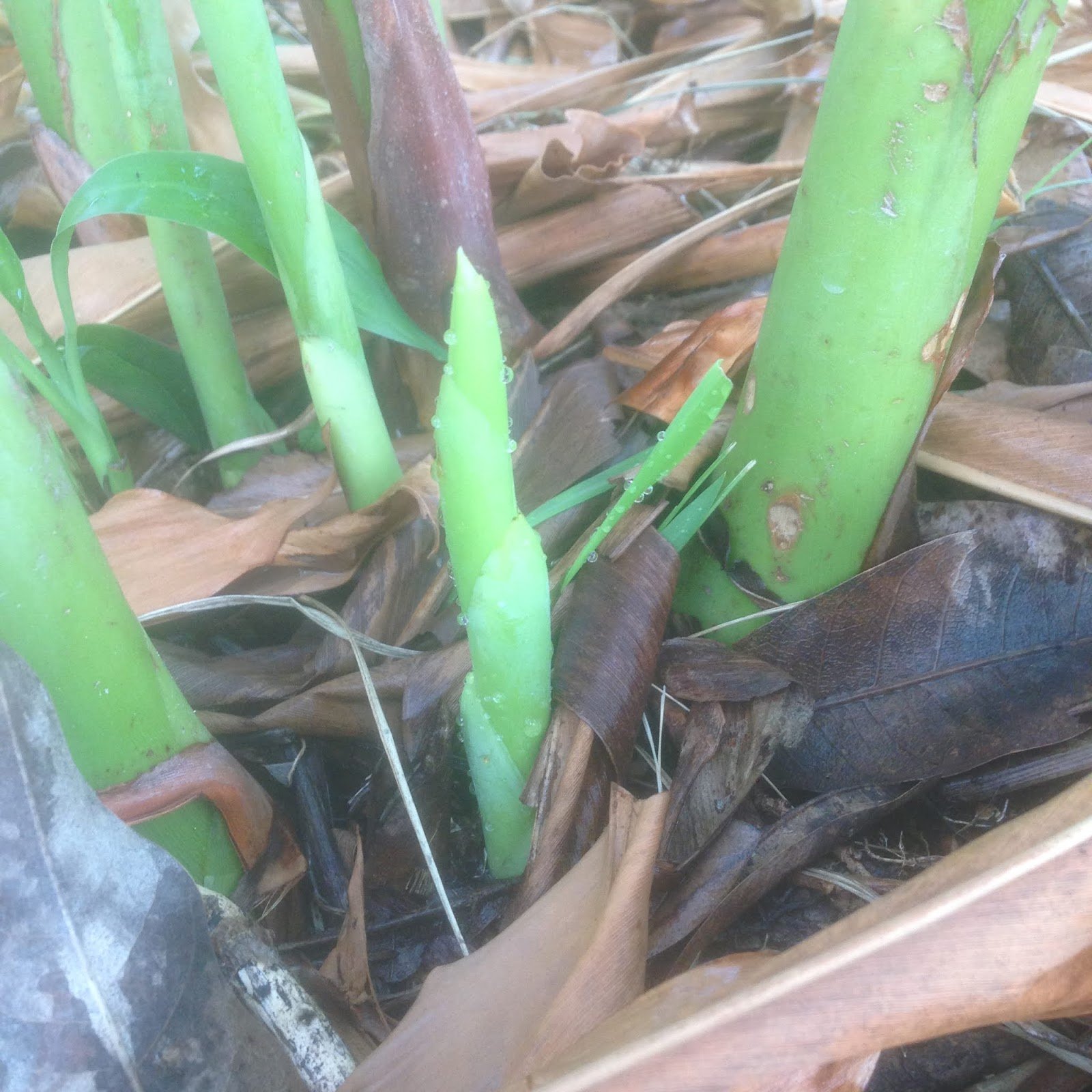 3. Tunas bunga biasa keluar dari umbisi pokok dan lebih dekat dengan pokok induk berbanding tunas anak pokok yang boleh keluar dari umbisi induk atau rizom dan lebih berjarak dari pokok induk.