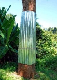 Kaedah atau petua kedua didalam mengawal serangan tupai terutama pada pokok durian adalah dengan memasang sekeping zink pada batang pokok. Zink ini sama jenis zink atap rumah (Sila lihat foto disebelah) atau zink licin sesuai dipasang denga memakunya kepada batang pokok durian. Zink ini yang bersifat licin tidak membolehkan tupai, minyet dan hariwan lain untuk memanjat batang pokok durian. Kuku tupai yang tajak tidak membolehkan ia memanjat pokok untuk menikmati buah durian. Kaedah ini memang murah, tahan lama dan praktikal untuk dilakukan dalam dusun durian yang kedudukan pokoknya berjauhan atau pokok laon disekeliling yang ada dahan dibuang dahulu. Dalam penulis membuat pemerhatian dikawasan dusun durian komersil, kaedah memasang zink logam adalah yang paling popular dikalangan penanam durian di Malaysia. Ia mesra alam, mudah dipasang dan boleh dicat dengan warna sesuai untuk membuat inventori pada pokok durian tersebut. Tupai memang tidak mampu memanjat pokok durian daripada bahagian bawah pokok.