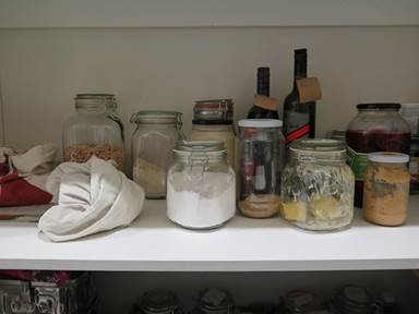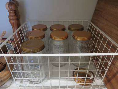 How we store everything has not changed since my first year. Glass jars, ceramic bowls and the stainless steel containers are all we use. We have not dropped down dead from germs … because we all know that cling wrap will save us from germs.