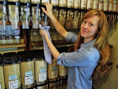 We take all our own jars, bottles and bags. I write a list of exactly what we need and take a container for each food item needed. In the last two years there has been an explosion of bulk food stores opening up around Melbourne.