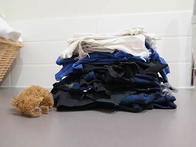 General cleaning is done with old cotton t-shirts. We wash dishes with an second hand cotton shirt cut up and sea sponges collected from the beach. We still have our old brooms and vacuum cleaner. There is no bleach. No harsh chemicals. Attitude to cleaning = relaxed.