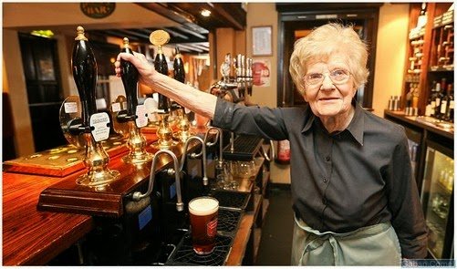 Jika pada umumnya nenek yang berusia 100 tahun di cadangkan untuk berehat di rumah , tapi nenek yang satu ini menjadi pelayan bar tertua sedunia . Nenek yang bernama Dolly Saville ini merupakan palayan bar tertua di dunia , dan tidak mempunyai rancangan untuk bersara dari pekerjaannya .