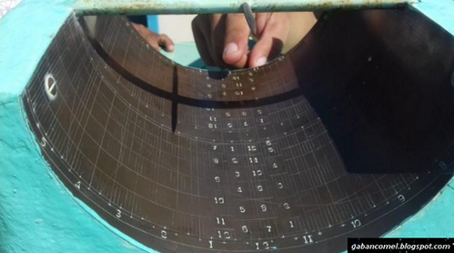 Ketika tertimpa sinar matahari, paku tersebut membentuk bayangan yang jatuh di garis-garis nombor tersebut.