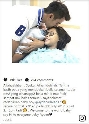 Pasangan itu berkahwin September tahun lalu, dan Bella melahirkan anak sulung mereka, Mohamad Ayden Adrean, 8 Julai lalu.