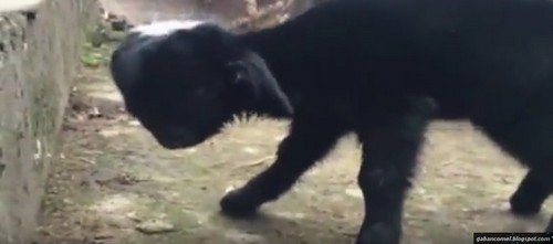 Video yang dirakam di bandar Leshan itu menunjukkan anak kambing berwarna hitam tersebut dilahirkan dengan dua hidung, dua mulut dan dua pasang mata tetapi hanya mempunyai empat kaki.