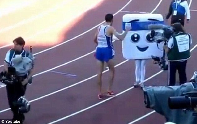Berikut Video Atlit Lari Mahiedine Mekhissi-Benabbad Mendorong Maskot Gadis 14 Tahun: