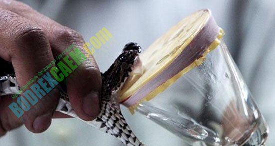Dalam video itu, bisa diambil dari ular Russel, dimasukkan ke dalam sebuah gelas. Setelah itu, sang pria mengambil bisa yang dikumpulkan menggunakan sebuah alat suntik.