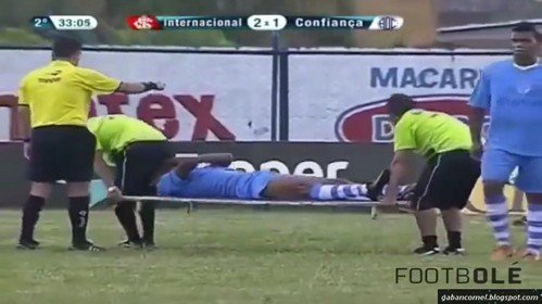 Malangnya, semasa tengah kesakitan, mereka justru terjatuh dari stretchers. Ada pemain yang jatuh lantaran pasukan perubatan tergelincir, ada pula yang tidak sengaja “tertimpa” ahli perubatan yang memegang stretchers.