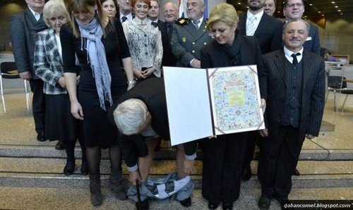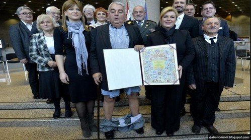 Pengerusi Jawatankuasa Hak Asasi Manusia Helsinki di Croatia, Ivan Zvonimir Cicak baru memegang anugerah tersebut ketika seluarnya tiba-tiba jatuh hingga ke pergelangan kakinya di hadapan media tempatan dan antarabangsa.