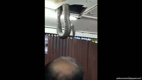Kini, giliran seekor ular raksasa jatuh dari siling di sebuah kedai makan di Hong Kong. Ular sepanjang 6 meter itu jatuh dari siling dan membuat seluruh pengunjung restoran terkejut.Jom saksikan video berikut ini;