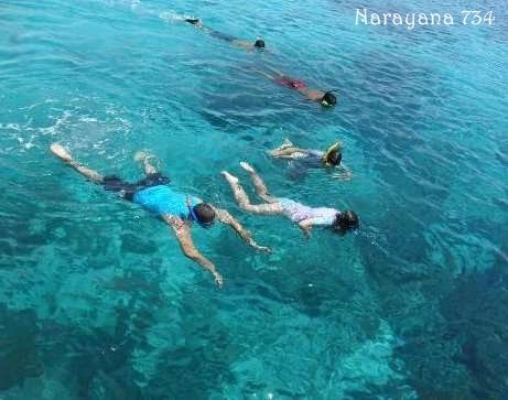 | Turis menikmati snorkeling di laut pantai Pink |
