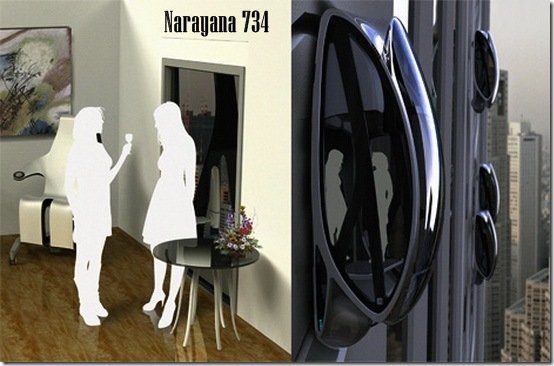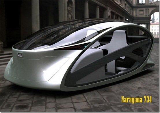 Narayana 734 – Satu lagi desain kendaraan masa depan dari pabrikan Peugeot, Perancis. Berangkat dari kebutuhan kendaraan ramah energi dan makin terbatasnya lahan parkir kota besar di masa depan maka diciptakanlah konsep mobil unik ini. Kalau Anda pernah lihat film Minority Report-nya Tom Cruise, mungkin Anda tidak akan asing lagi.