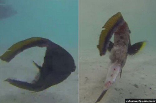 Tetapi siapa sangka, teryata kejadian sama berlaku bukan hanya di daratan saja. Di laut pun ternyata ada kejadian yang cukup sama dan serupa, tetapi haiwannya berupa ikan laut, yang masih mampu hidup walaupun sebahagian tubuhnya telah hilang.