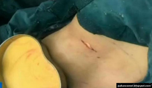 Perempuan tersebut pun langsung dilarikan ke hospital. Para doktor yang memeriksanya mendapati bahawa hidrogel beracun yang sebelumnya disuntik di payudara pesakit, perlahan hancur dan mengalir ke perutnya.
