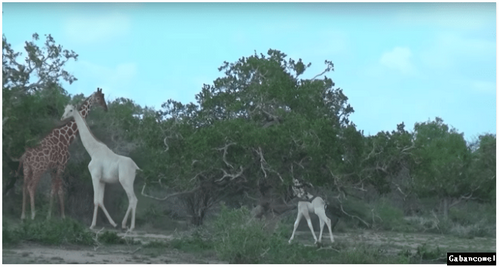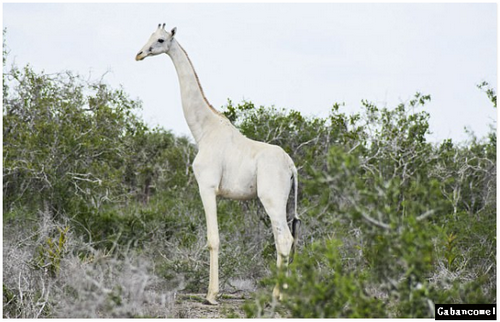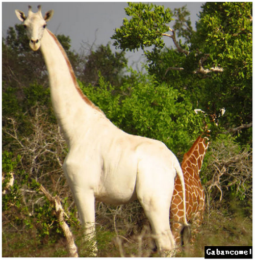 Dua ekor zirafah ditemui mempunyai kulit yang sangat luar biasa. Sekiranya haiwan tipikal Afrika umumnya berwarna merah kemerahan dengan garis putih terang, tetapi dua ekor zirafah hanya didapati putih seperti warna bulu beruang kutub.